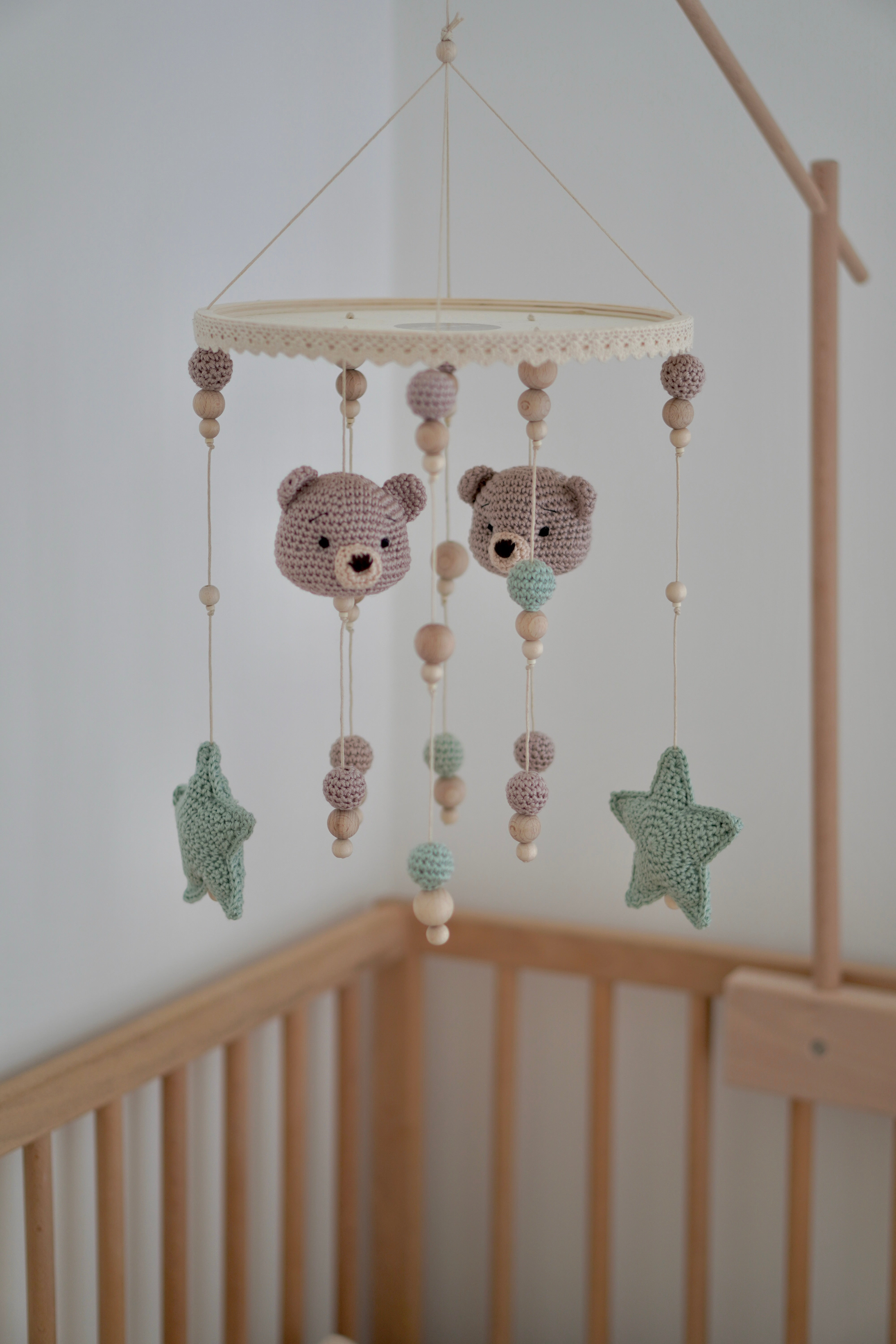 With us, you'll find unique baby gifts – handmade, high-quality, and customizable. Whether it's pacifier chains, stroller chains, grasping toys, rattles, music boxes, crocheted stuffed animals, play arches, premium baby knitwear, or 2-in-1 baby mobiles.